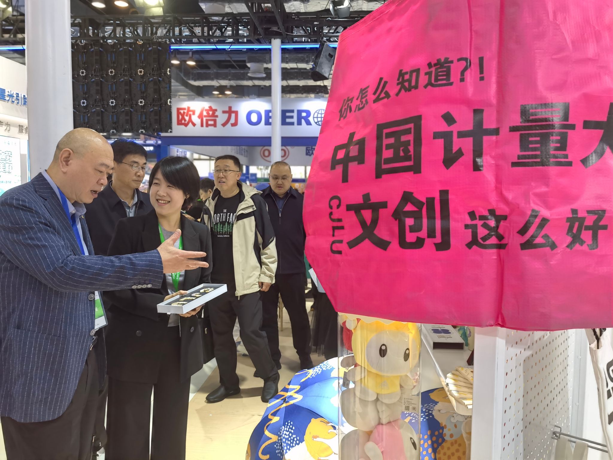 展覽會上,我校展出計量器具系列、量大景觀系列、量大萌寵系列文創產品,包括量大文創雪糕、量大萌寵聯名天堂傘、量大建筑抱枕毯、國潮書簽、國潮保溫杯等特色產品60余種,獲得各觀展高校代表的青睞好評。“量大文創”在此次展覽會中設置計量文化相關的問答互動,通過生動有趣的題目吸引更多的觀展高校代表駐足并了解計量文化和量大校園文化。觀展代表答題獲得的“量大文創顯眼包”成為會場打卡的靚麗風景線,俏皮可愛的外觀在會場內掀起一陣陣互動高潮。