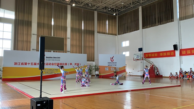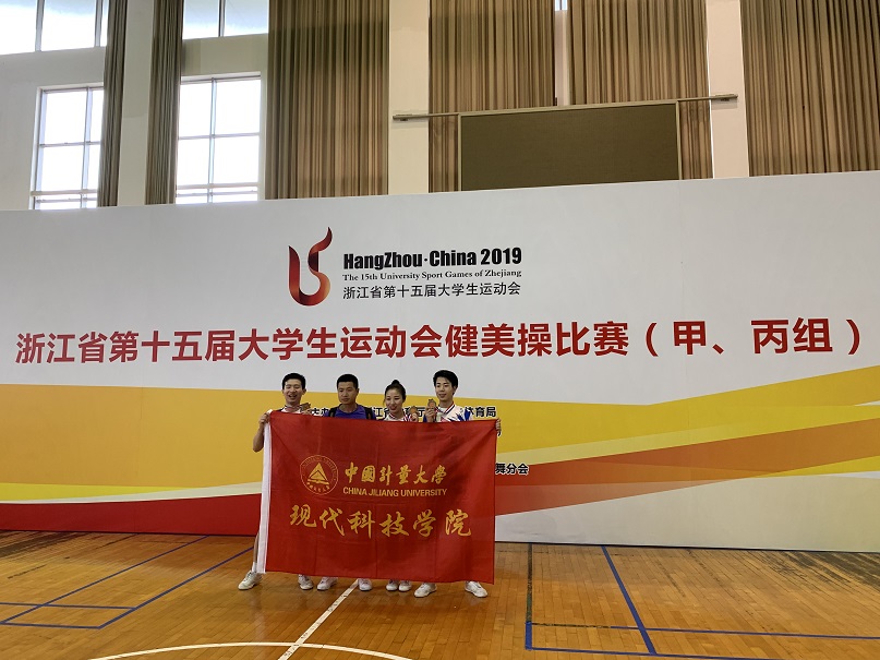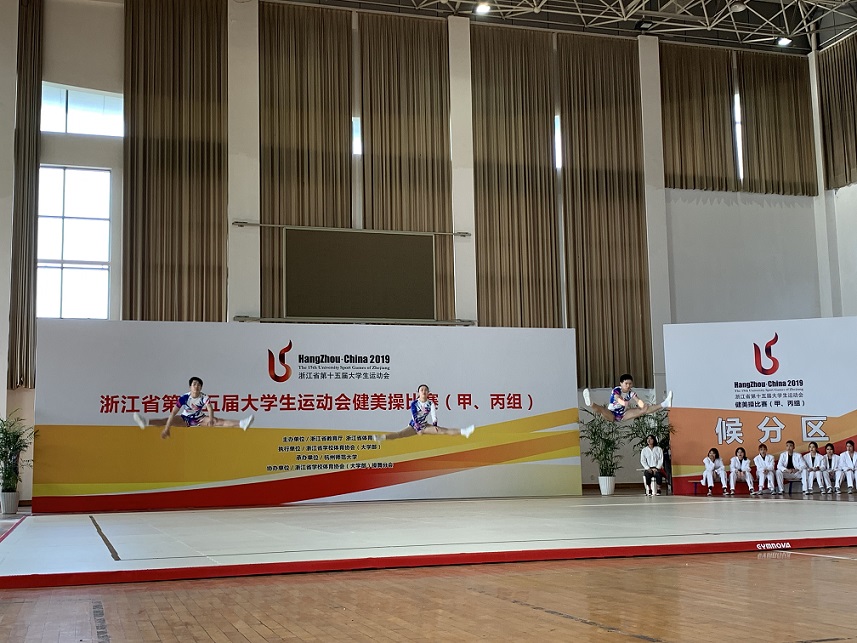 2019年4月17日至4月21日,由浙江省教育廳、浙江省體育局主辦的浙江省第十五屆大學生運動會健美操比賽(甲、丙組)在杭州師范大學(下沙校區)舉行。我校健美操隊派出本部與現代科技學院兩支隊伍共14名隊員參賽。