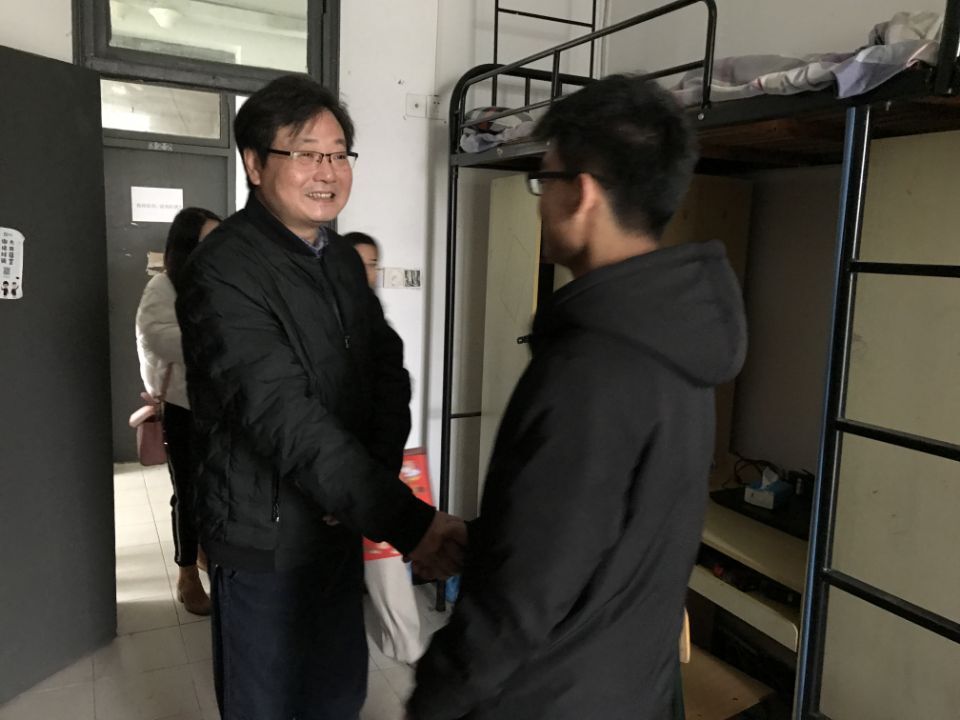 1月28日上午,校黨委副書記程剛先后來到學科競賽集訓實驗室和學生寒假集中住宿公寓等地,親切看望慰問寒假期間仍然奮戰在學科競賽和學生管理工作一線的留校學生和管理人員。學生處與后勤服務中心負責人、部分學院學生工作書記及輔導員等一同參加了慰問。