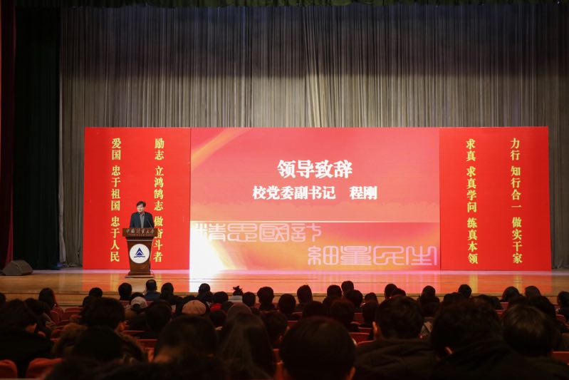 程剛代表學校黨委,向本期學生骨干班的開班表示熱烈的祝賀,向全體學員表示誠摯的問候。就如何過好大學生活,程書記談了幾點想法。在大學健康成長,一是要有規劃,要對自己的大學生活有想法,有目標,有方向,對自己四年以后干什么有打算。二是應養成良好習慣,良好的開端是成功的一半,從入學開始就要養成勤奮學習的習慣,養成規律生活的習慣。三是要不斷提高綜合素質,這將幫助我們走得更好,走得更遠。四是要身體健康,響應“三走”的號召,要多讀書,多鍛煉。