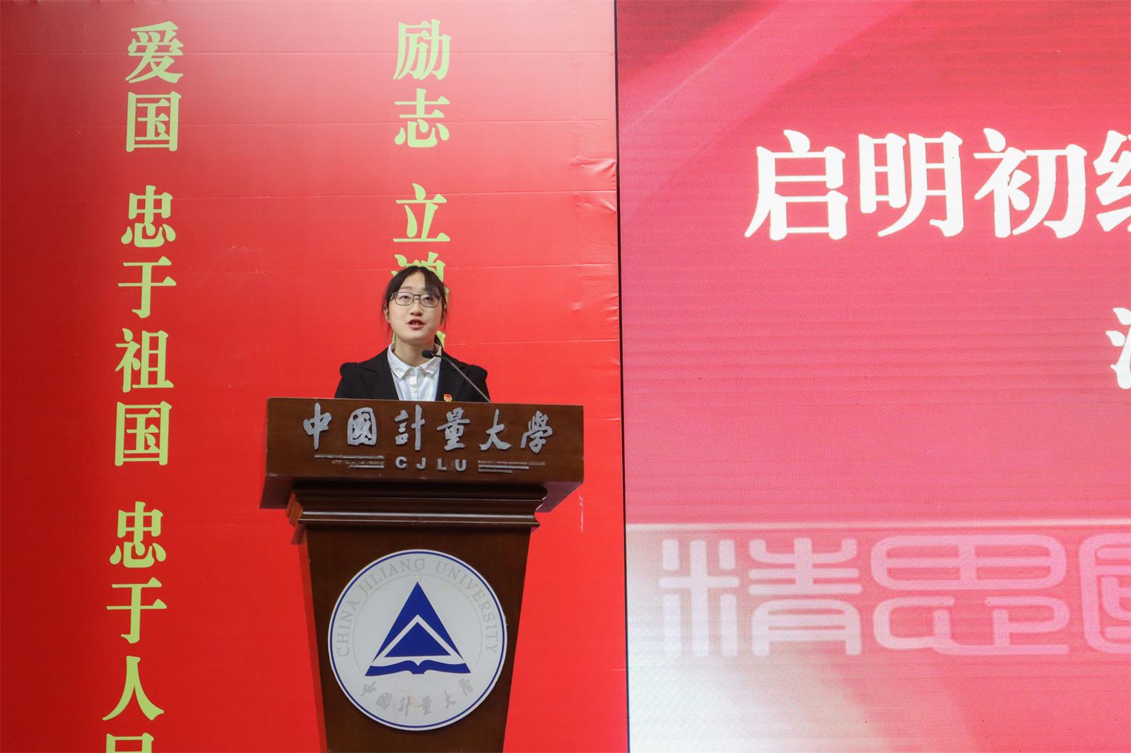 作為啟明學院初級班學員代表,江瑤同學提出了三個關鍵詞—“責任、嚴謹、團結”。她呼吁全體學員一起把困難當作鍛煉,努力進取,充分調動自己的熱情和責任感,用心用愛去服務好每一位學生。作為新時代的青年,肩負強國使命,讓青春在奮斗中多姿多彩。