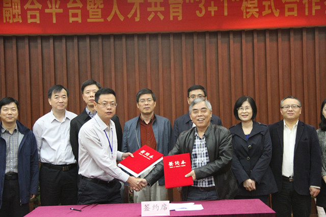 會上,吳太權代表現代科技學院對市質檢表示感謝,并對產教融合平臺暨人才共育”3+1”模式進行了介紹。隨后,易榮華與馬東偉分別代表雙方簽訂了《人才共育“3+1”模式合作協議》。市質檢院黨務行政中心副主任孫曉斌、民生與法制計量中心主任邵磊、現代科技學院機電工程系教師胡守虎和學生吳維飛在會上分別以實習生導師、班主任和學生的身份作了發言。