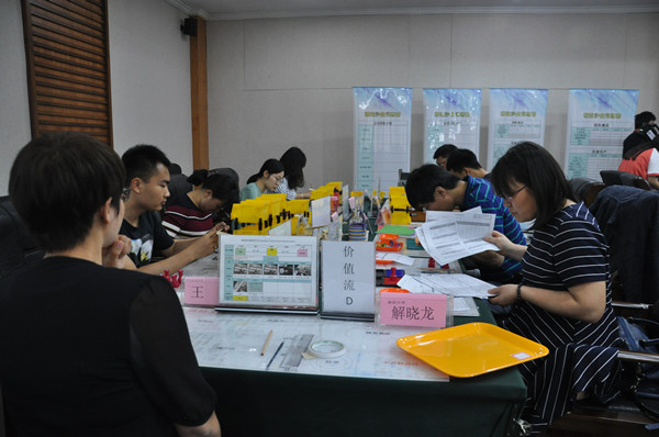 精益實戰道場是我校工業工程專業重點打造的特色實踐教學模式,由具有豐富經驗生產咨詢IE顧問、實戰派工業工程教師、工業工程技術研發人員組成的團隊,通過3年實戰研發打造,源于實踐,回饋教學。精益實戰道場是以課程實踐為驅動,道具演練為載體,通過完整企業實際生產運營過程,整合基礎工業工程、計劃控制、物流與設施規劃、質量管理、人因工程、生產成本管理、績效管理、精益生產等主干課程實驗的系統性特訓方式。通過“批量生產” → “改善生產”→“精益生產”的持續改善過程體驗,使學員深刻理解和應用工業工程主干課程的理論知識,提高學生組織溝通協調能力、問題發掘分析能力、改善設計創新能力、精益工具運用能力。